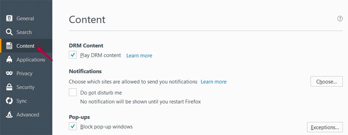 4. Go to 'Content Settings'